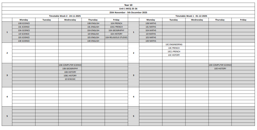 Year 10 End of Unit Exams