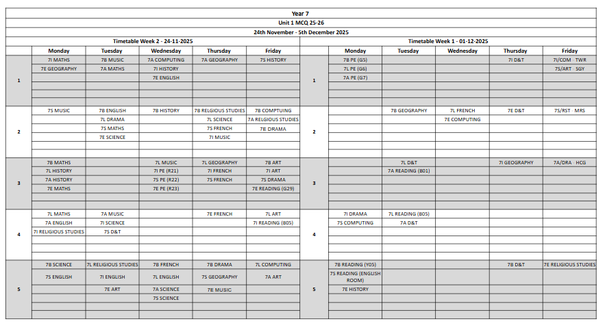 Please see the Unit 1 Assessment Timetables below: